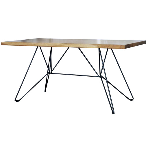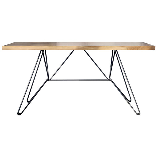 幾何学的なスチール脚の上に乗る力強い木目のウォールナット無垢天板が繊細な椅子との相性が良いモダンなダイニングテーブル。 幅:1600 奥行:800 高さ:730