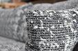 アームから背中までラウンドしてつながる笠木が美しいソファ。マットな黒の質感と陰影が美しい表情を引き立てます。クッション部分にはフェザーを使用し座り心地の良さも魅力の一つです。